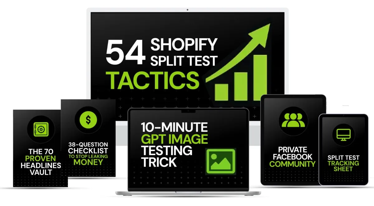 You’re getting instant access to 54 Shopify Split Test Tactics, a complete playbook of proven split tests that top Shopify stores use to increase conversions, AOV, and ROAS. Each tactic is broken down step by step so you can apply it in minutes without coding, redesigns, or apps.